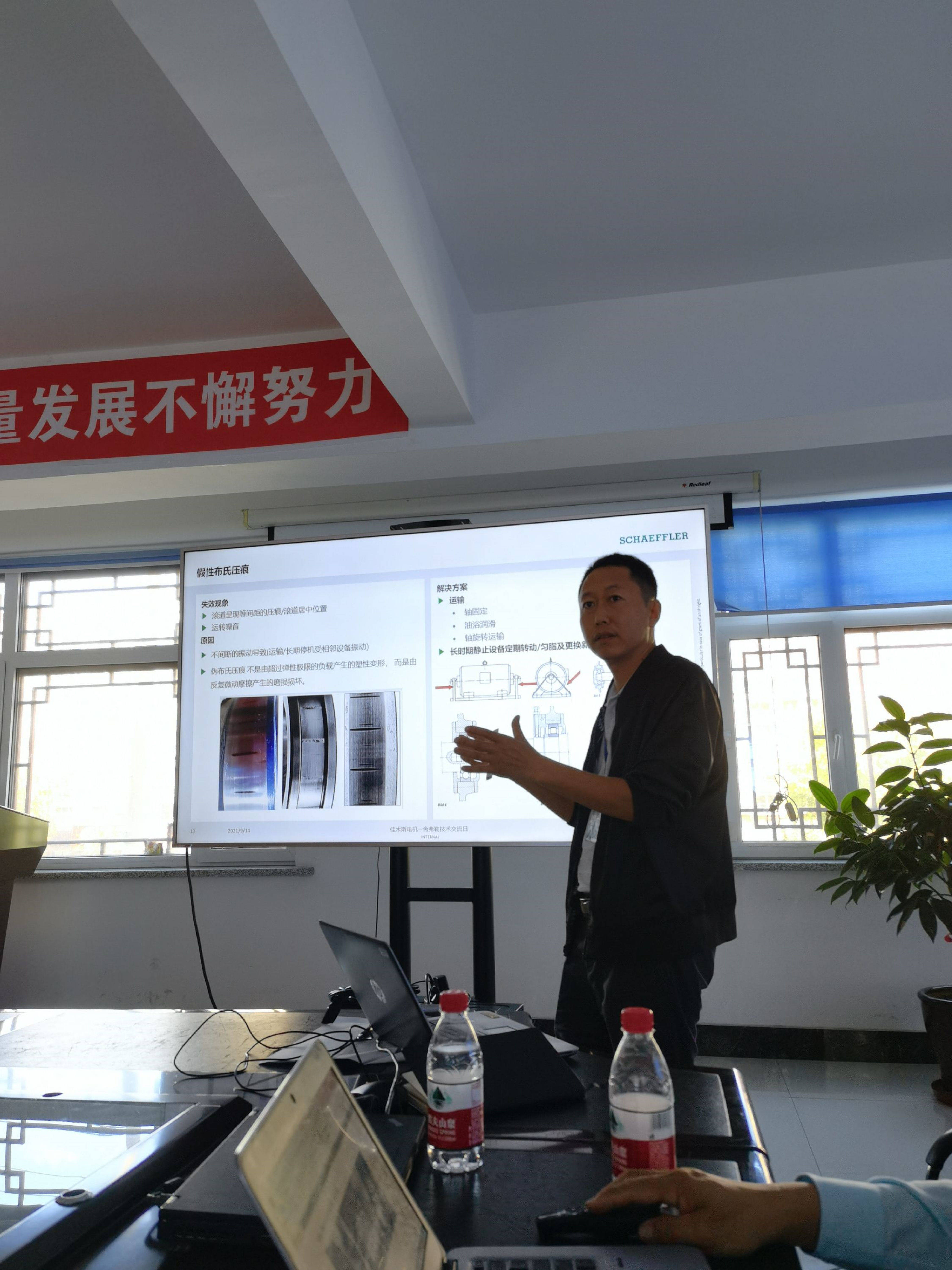 2021年9月14日我公司應(yīng)佳木斯電機(jī)股份有限公司邀請舉行專場FAG軸承技術(shù)交流會議。在舍弗勒(上海)貿(mào)易有限公司鼎力支持下張明義 、張之濱、劉元朋三位高級工程師出席技術(shù)交流會議并做相關(guān)技術(shù)培訓(xùn)。佳木斯電機(jī)股份有限公司設(shè)計部、工藝部、質(zhì)檢部等各部門科室領(lǐng)導(dǎo)共七十余人參加會議。